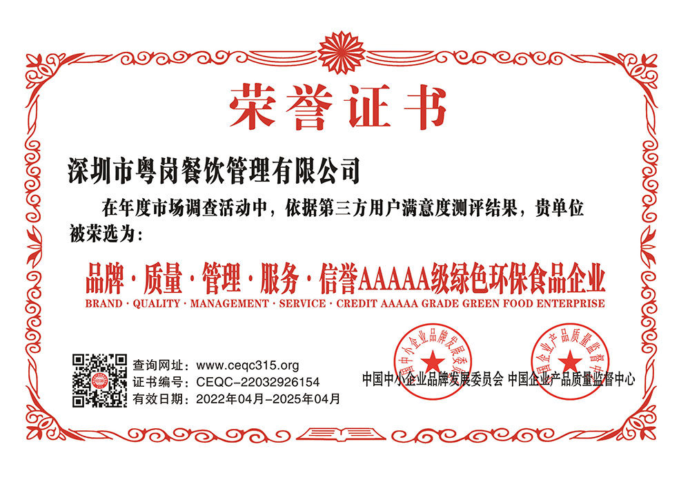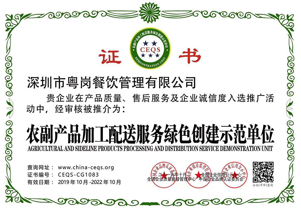 深圳市粵崗餐飲管理有限公司,是一家集蔬菜種植和農(nóng)副產(chǎn)品配送為一體的專業(yè)型餐飲公司,主要為學校、工廠企事業(yè)機關(guān)單位提供蔬菜和農(nóng)副產(chǎn)品配送服務(wù)。公司自成立以來始終以質(zhì)優(yōu)價廉、服務(wù)至上為原則,嚴格按照ISO:9001國際標準體系進行管理。同時建立了行業(yè)領(lǐng)先的配送中心、大型冷庫和保鮮庫、檢測中心以及專業(yè)化的配送團隊,能長期安全、穩(wěn)定、準時的配送貨物。我們所有蔬菜均經(jīng)過初步加工、無黃葉,無泥沙等雜質(zhì),利用率達97%以上...保障向用戶提供的各類食材的衛(wèi)生和質(zhì)量。公司為了適應(yīng)不同客戶的需求,配有專業(yè)人員和配送車輛,實行“一對一”的服務(wù)體制,一心一意的為客戶服務(wù),秉承粵崗誠實守信、服務(wù)第一、客戶至上的服務(wù)標準,真正讓客戶花最少的錢吃最好的菜。粵崗多年來何以欣欣向榮,因為我們知道只有勇于擔當責任,才能承擔更大的責任,就是因為 粵崗員工貫徹公司態(tài)度決定一切、細節(jié)決定成敗的真理,從質(zhì)量抓起,從服務(wù)做起,才創(chuàng)造了如今的規(guī)模化供應(yīng)、統(tǒng)一性配送、專業(yè)化服務(wù)的粵崗。